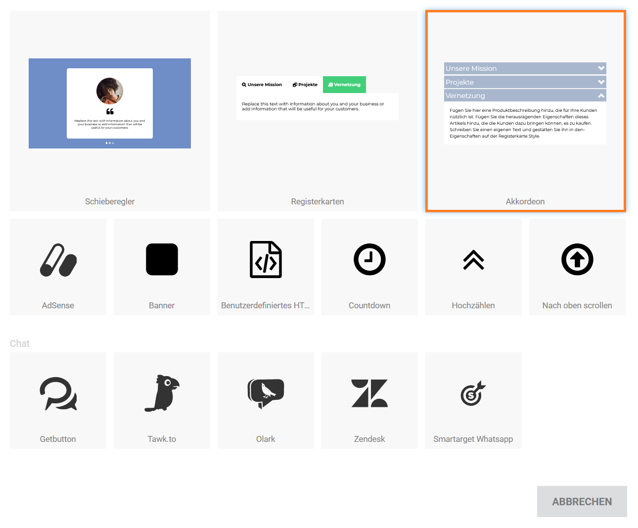 Mit dem Akkordeon Modul können Sie verschiedene Beiträge in einem Drop-Down-Menü umschalten.